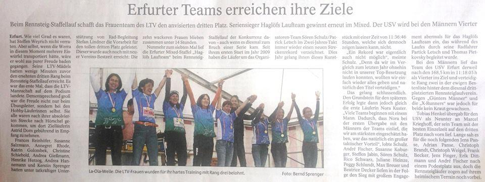 Hervorzuheben ist, dass erstmals die ersten drei Plätze in der Kategorie Frauenstaffel mit der Zielzeit unter 14 Stunden vergeben wurde. Bei der Siegerehrung feierte sich unsere Mannschaft in die Herzen der Zuschauer mit La-Ola-Wellen. Über die Jahre hat Steffen Weyrich aus der Montag-Trainingsgruppe ein eng befreundetes Team geschweißt.